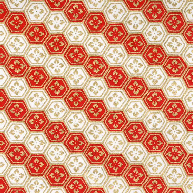 手染友禅紙(菊全判)1000×660 花亀甲 紅白
